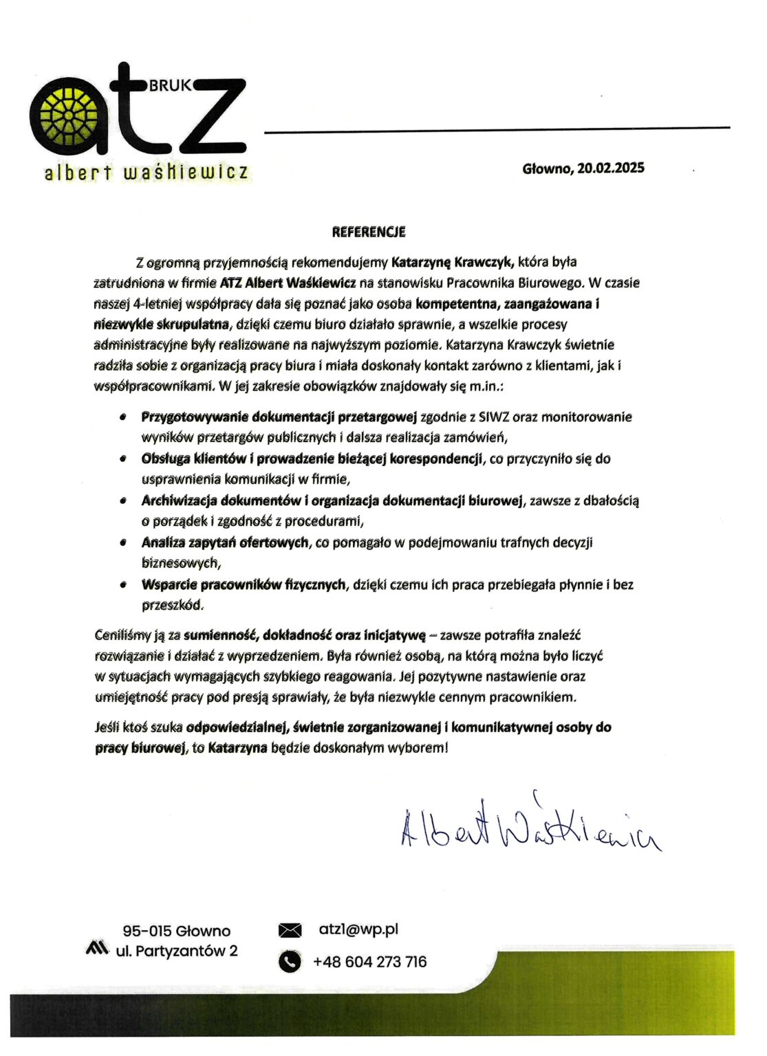 Nazywam się Katarzyna Krawczyk i posiadam wieloletnie doświadczenie w pracy biurowej, zarówno w małych firmach, jak i korporacjach.